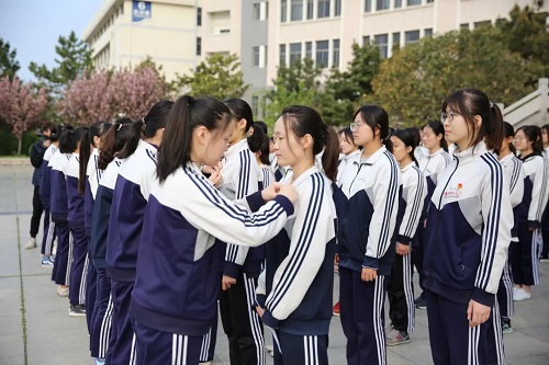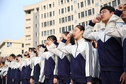 最后,全校一千多名师生齐唱共青团团歌。场面恢弘,气势磅礴。