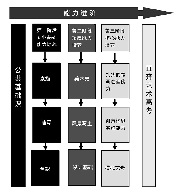 面向艺术类高考,培养具有良好的思想道德素质、职业素养和文化水平,掌握基本的文化理论知识,并通过美术高考各学科的学习,使学生掌握基本的造型原理、规律以及表现方法,掌握色彩的基础理论知识,以及审美原理、规律、表现方法,培养学生正确的观察方法,使学生具有较完整和独立的创造能力,提高艺术修养,顺利升入美术类高等院校奠定坚实的基础。