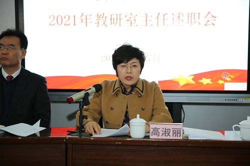 随后,校长高淑丽对教研室主任述职进行点评。她指出,述职只是形式,目的在于促进各学科对以往工作的深入总结,对新学期工作进行科学的谋划安排,加强各教研室的沟通交流,比学赶超,推进学校教学教研工作整体发展。她强调,新学期要铆足劲,加油干,一是发扬优势,建设高水平专业群,争取进入省级高水平专业群,尤其在各类竞赛中要把艺术优势扬足,冲刺最高奖项;二是改革创新,建设特色文化课教学模式,打造具有特色的艺术高考文化课教学模式,不断提高学生文化成绩;三是立德树人,加强教学管理,提升教师专业水平;四是培养人才,以老带新,以新促老加强团队建设,用众力,无敌天下,用众智,无畏圣人。