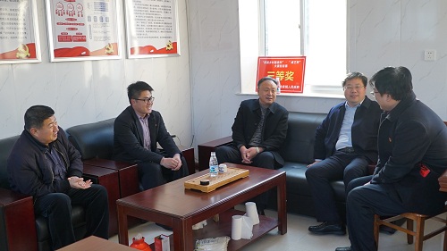 车学辉书记与宋磊书记亲切交谈,深入了解了赵红辉同志自2018年4月以来担任第一书记工作开展情况。宋磊同志和村两委会成员高度赞扬了赵红辉同志甘于奉献、主动想事做事的工作作风。车学辉书记对赵红辉同志在2018年度组织部考核中获得优秀等次表示赞赏。他要求赵红辉同志要着眼长远,结合现状和实际把精准扶贫与小康村建设工作相结合,全力以赴抓好精准扶贫任务落实,走好产业扶贫新路子,切实把精准扶贫和全面小康各项工作抓得更细更实。车书记表示学校将继续在党建、人力、物力和财力等方面大力支持联系村和第一书记工作。