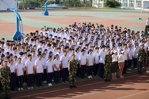 9月3日上午7点30分,威海艺校2019级新生军训动员大会在田径场如期举行。副校长连春亭、教导处主任许小杰、学生处主任孙明山、教师丁琪、教官巩虎波及400余名新生参加了会议。